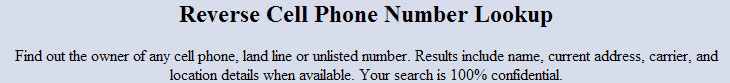 They also provide a 100% money-back guarantee, so they make it totally risk-free for you to run your reverse cell phone number search and access their Premium reverse phone directory.Run a free Reverse cell phone lookup now.